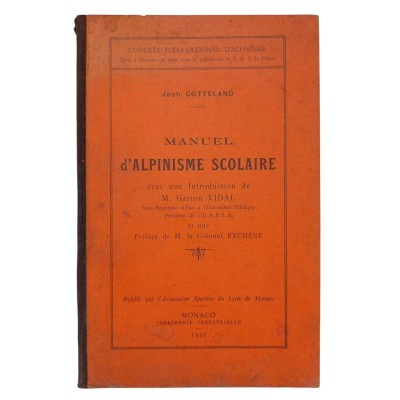 Jean Gotteland | Manuel d'alpinisme scolaire. Introduction de Gaston Vidal. Pref. Colonel Eychêne | Assoc. sportive lycée de Monaco (Monaco),1921,1 vol. 135x210 mm, 105 p. ;,(14F6)